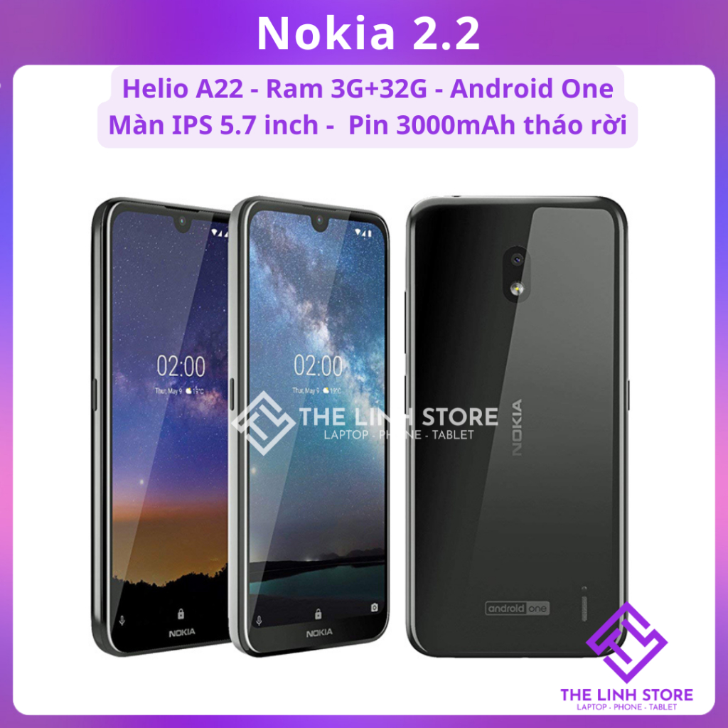 Nokia 2.2 là một chiếc điện thoại thuộc phân khúc giá rẻ (entry-level) được ra mắt vào năm 2019. Điểm nhấn lớn nhất của dòng máy này tại thời điểm ra mắt là chương trình Android One, giúp máy nhận được các bản cập nhật phần mềm nhanh chóng và giao diện thuần Google.