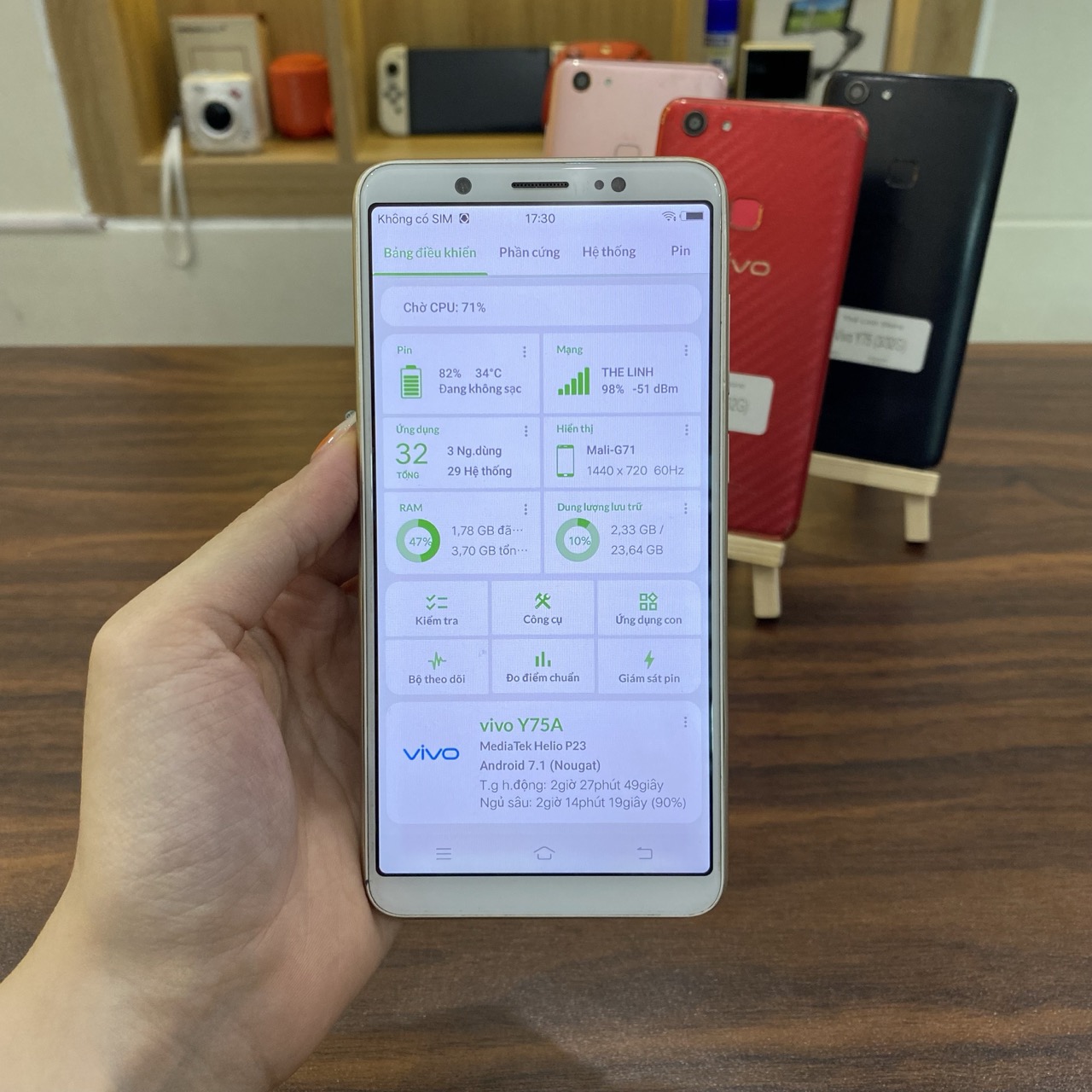 - HĐH: Android 7.1 ROM Quốc tế có tiếng Việt, có CH PLAY
