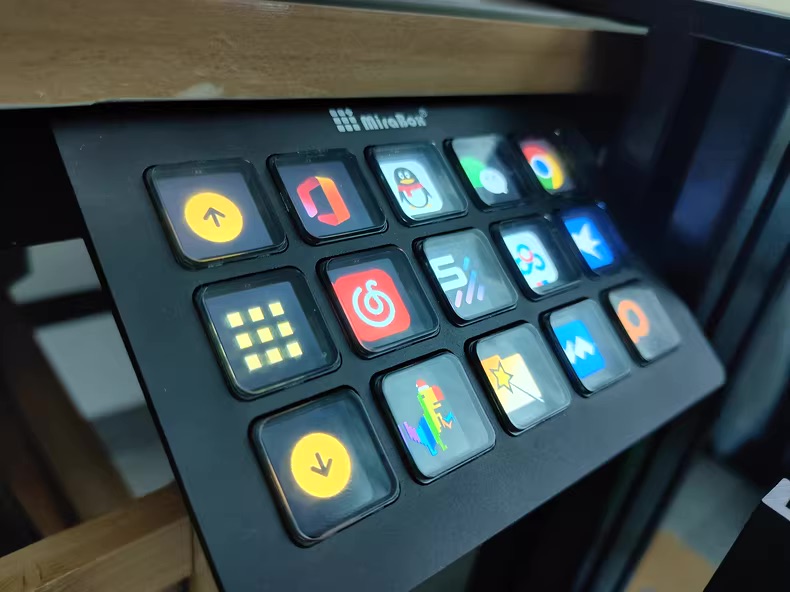 Thiết bị MiraBox Stream Dock (15 phím) - Màn hình phụ StreamDock được thiết kế theo dạng như một chiếc máy tính bảng cỡ nhỏ, được thiết kế bàn phím nổi với tổng cộng 15 phím. Các phím điều chỉnh LCD có thể hoạt động tốt khi được kết nối với nguồn điện, đồng thời, các phím điều chỉnh được tích hợp rất nhiều tính tính năng và liên kết với những công cụ được yêu thích hiện nay. Ngoài ra, các phím được lập trình trên bảng có khả năng phản hồi thao tác của người dùng vô cùng nhanh chóng và chính xác.